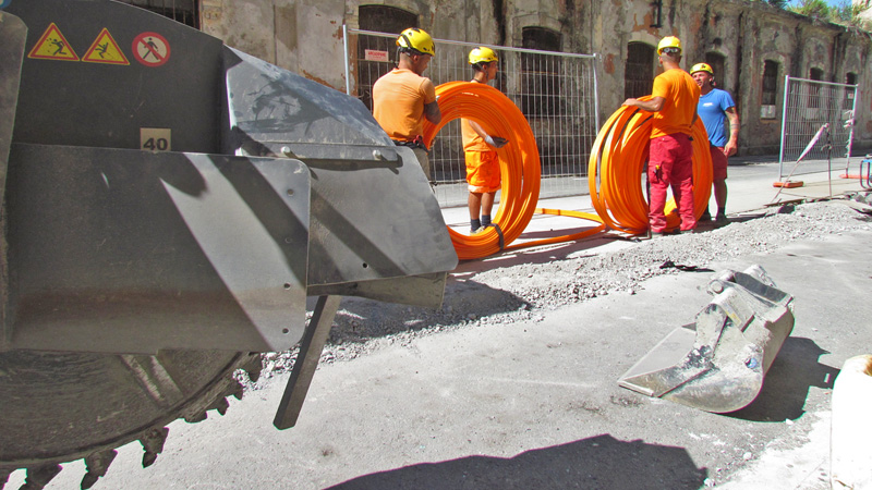 Our minitrencher with remote control is able to curve the excavation and follow the road trajectory, and this allows us to be faster in the installation of fiber optic systems.